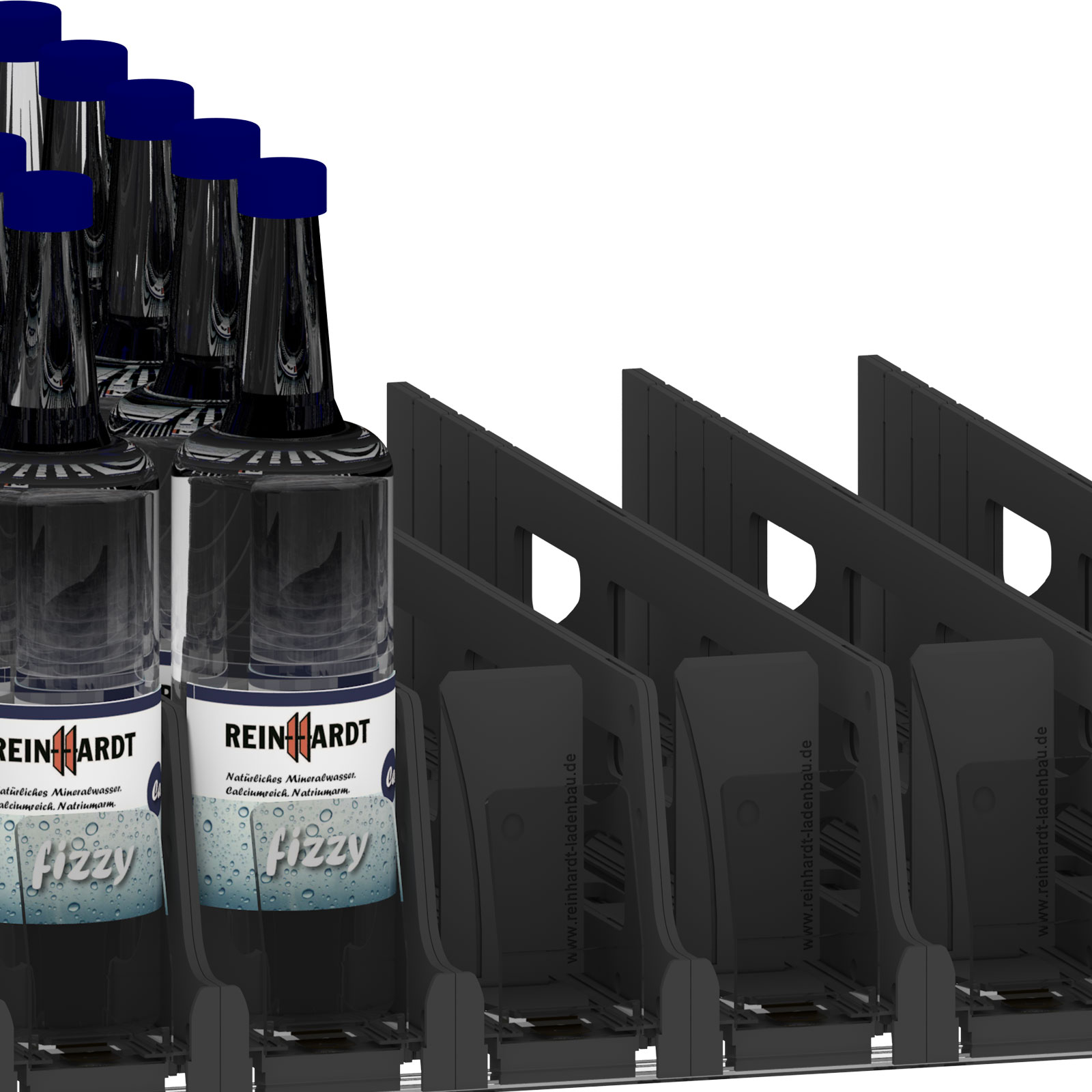 Das Bestückungsset POS-T SuperVario für Wasserflaschen bis 0,7 l ist die professionelle Präsentationslösung für den Einzelhandel. Mit variablen, in der Länge kürzbaren Warenvorschubkanälen und Universal-Pushern ermöglicht es eine geordnete, attraktive und verkaufsfördernde Präsentation von Wasserflaschen und ähnlichen Getränken.
