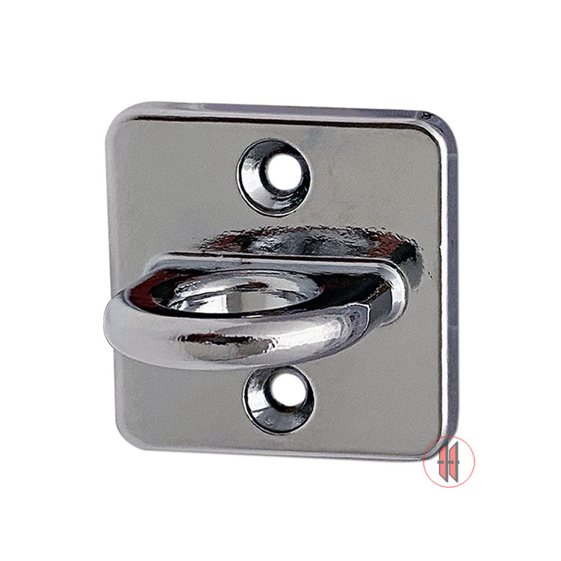 Wandhalterung in Silber zur Aufnahme der Absperrkordeln mit Karabinerhaken.